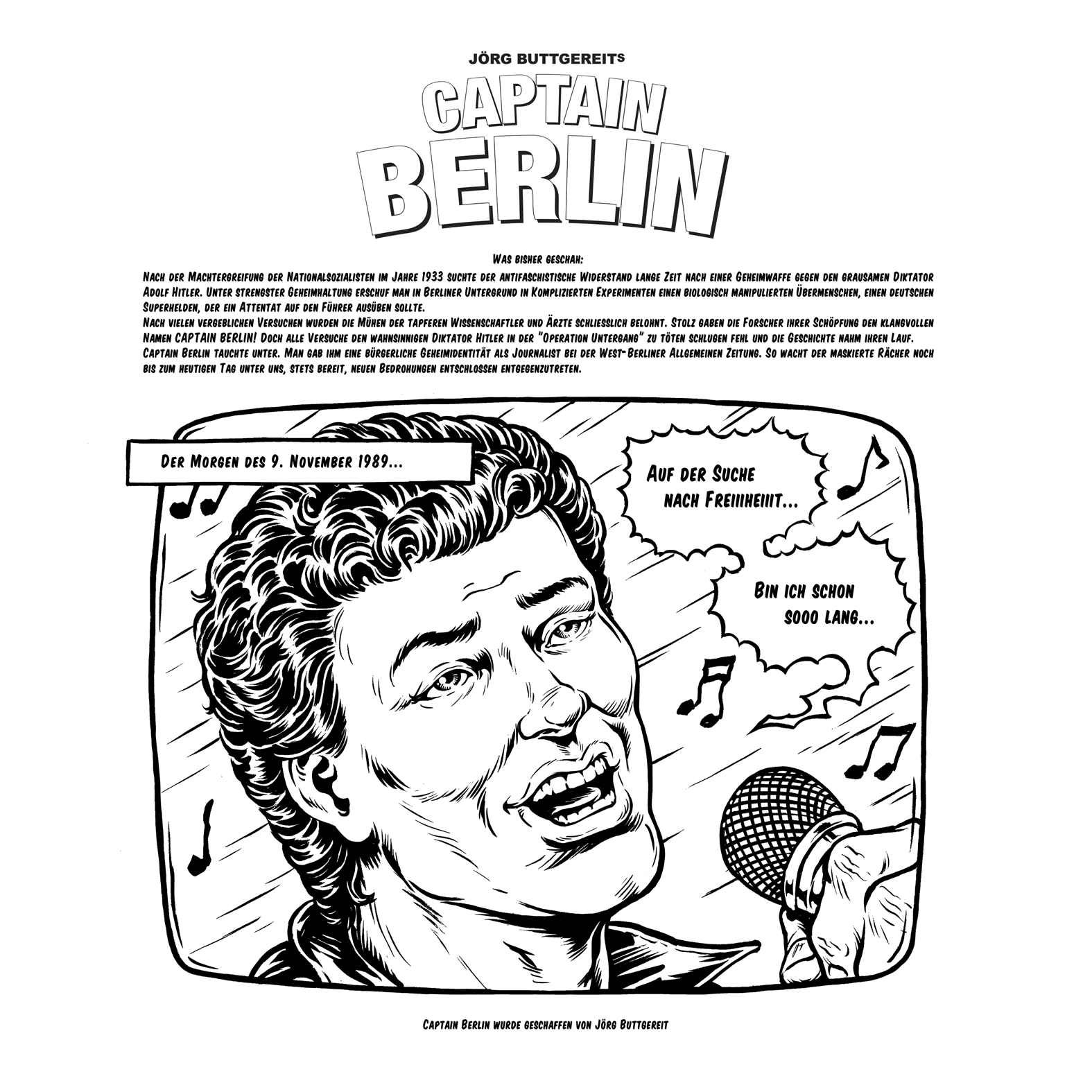 Kaum verkündet SED-Politbüro-Sprecher Günter Schabowski am 9. November 1989 die Grenzöffnung, steht auch schon der Amerikaner Gerrit Hoffelhass auf der Berliner Mauer und singt seinen Hit "Auf der Suche nach Freiheit". Das Volk jubelt ihm zu. "Bürgers of the GDR. Are you ready for Freiheit?" Nein! Natürlich nicht! SED-Generalsekretär Erich Honecker ist entsetzt. Eben noch haben er und seine Genossen den 40. Jahrestag der DDR gefeiert. Und jetzt steht dieser singende CIA-Agent Hoffelhass auf dem antifaschistischen Schutzwall und implantiert mit seinem Schlager suggestive Botschaften von der Herrschaft des Kapitals in die Hirne der DDR-Bevölkerung. Ein hinterhältiger Akt psychologischer Kriegsführung! Um den umstürzlerischen Beat-Krawall von Hoffelhass zu stoppen, schickt Honecker seine Geheimwaffe, den sozialistischen Superhelden Genosse Berlin zum Brandenburger Tor. Nur der einzig wahre westdeutsche Superheld Captain Berlin kann jetzt noch helfen. Wird die Berliner Mauer wirklich fallen? Besteht vielleicht sogar die Möglichkeit einer Wiedervereinigung? Und was schlummert in diesem geheimnisvollen Giftmüllkanister aus Tschernobyl, der im Politbüro der SED vor sich hinbrodelt?
