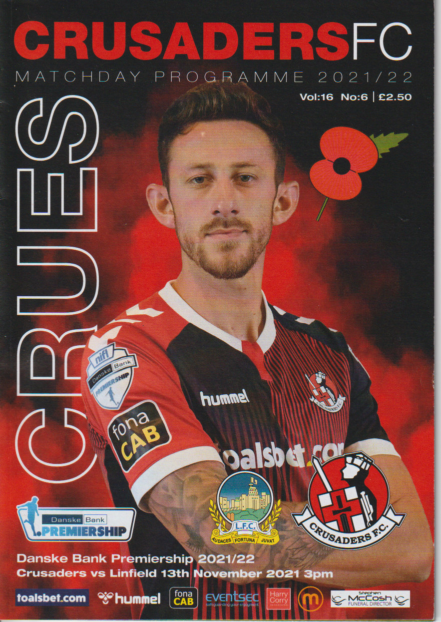 Das offizielle Crusaders FC "vs. Linfield" Magazin ist das Stadionmagazin der Crusaders aus Belfast. Matchday Programme from 13th Novemer 2021. Vol. 16, No. 6.